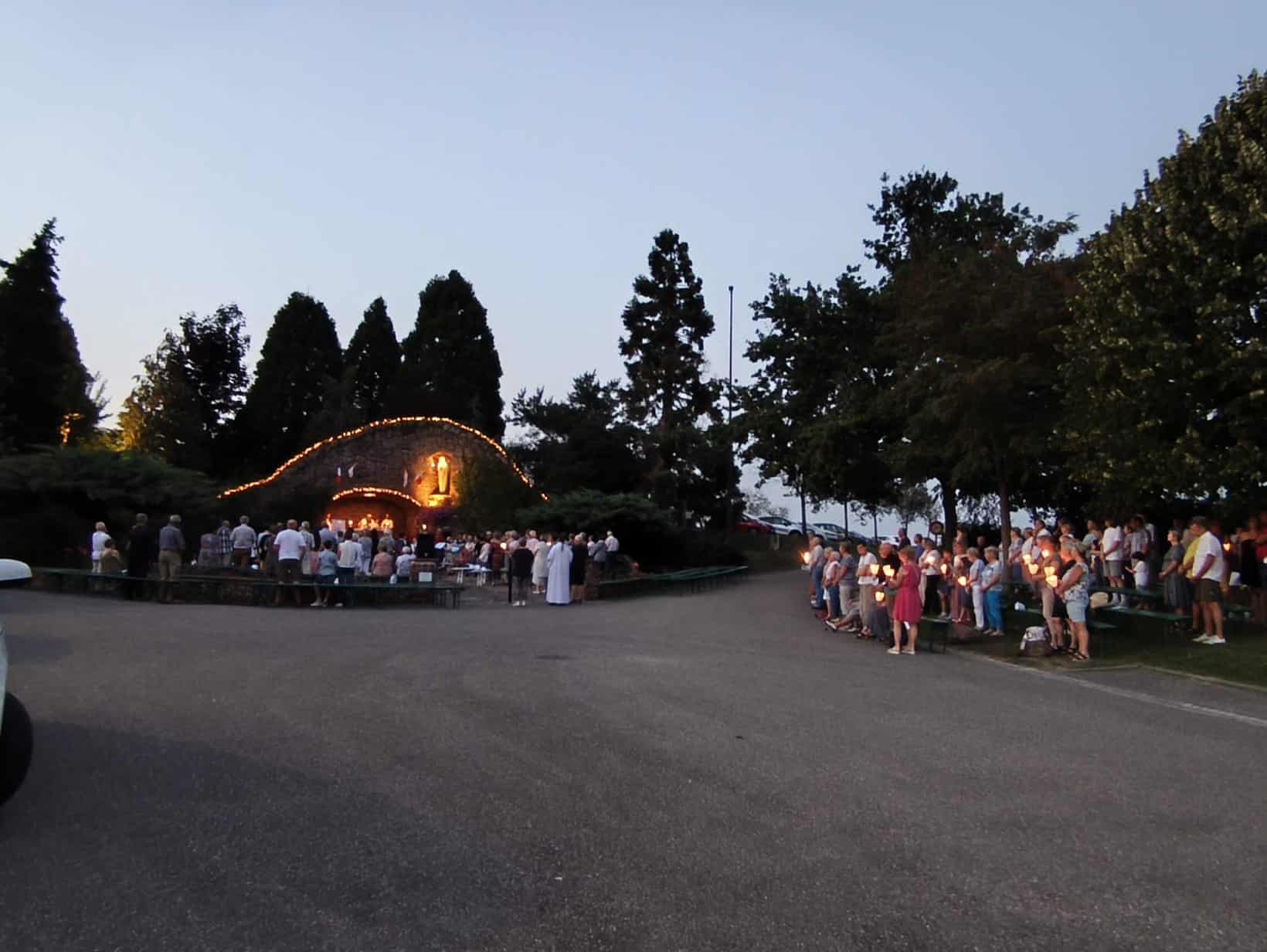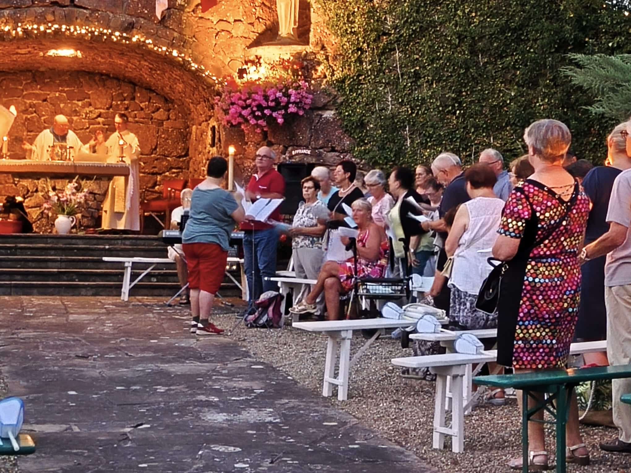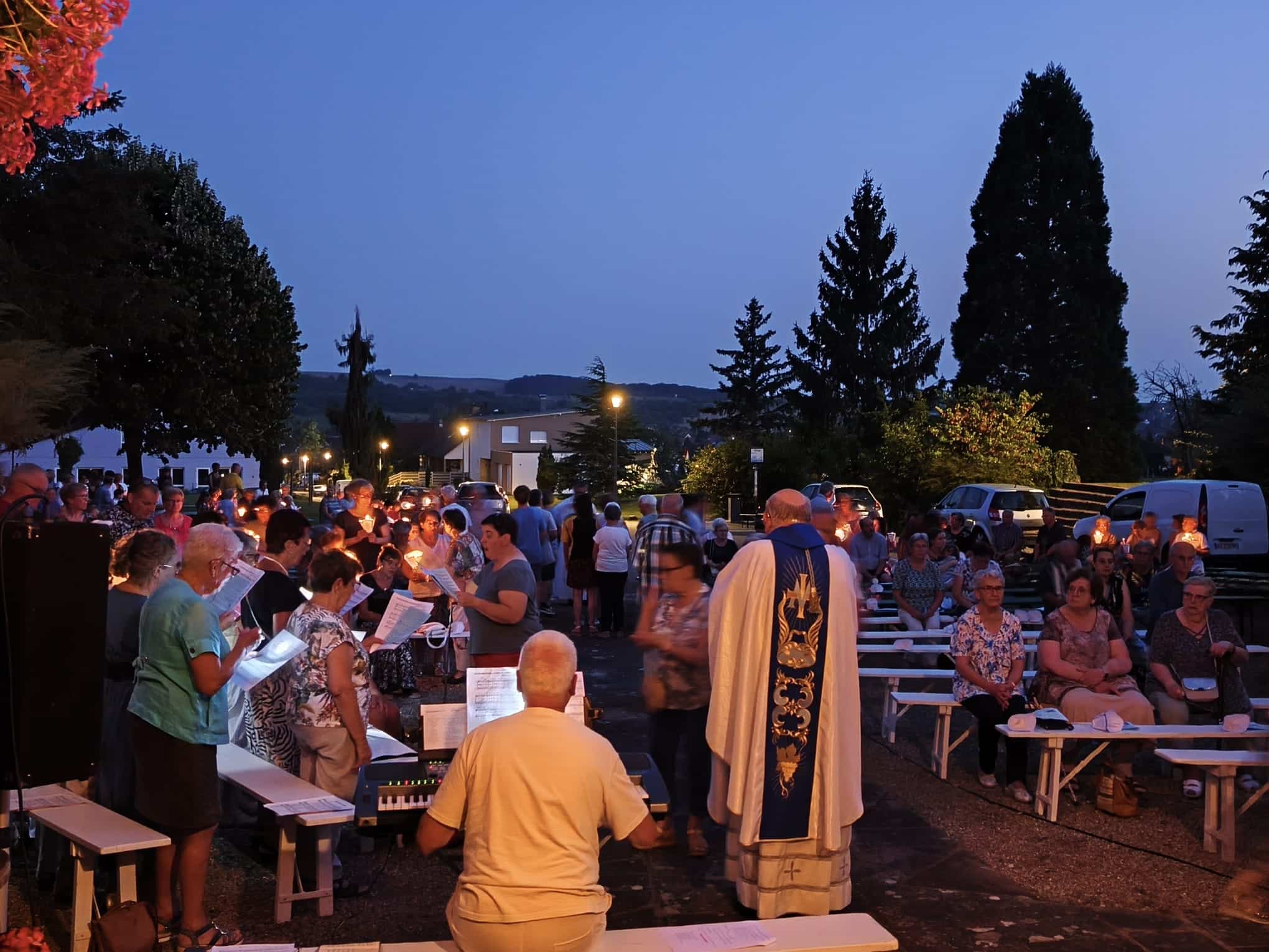 Le Chanoine Geissler entouré de 150 pèlerins d'espérance pour célébrer la Vigile de l’Assomption de Marie