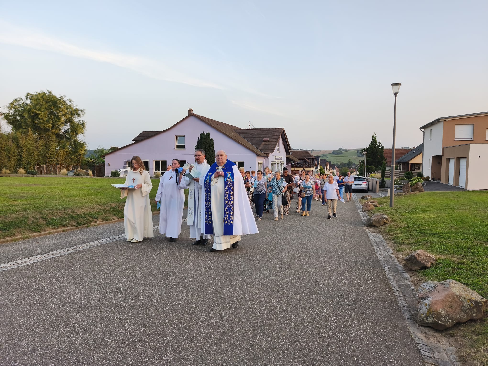 C’est sous un ciel bleu et avec une chaleur d’été que pas moins de cent cinquante personnes étaient présentes à Uberach ce jeudi 14 août au soir pour fêter ensemble l’Assomption de la Bienheureuse Vierge Marie.