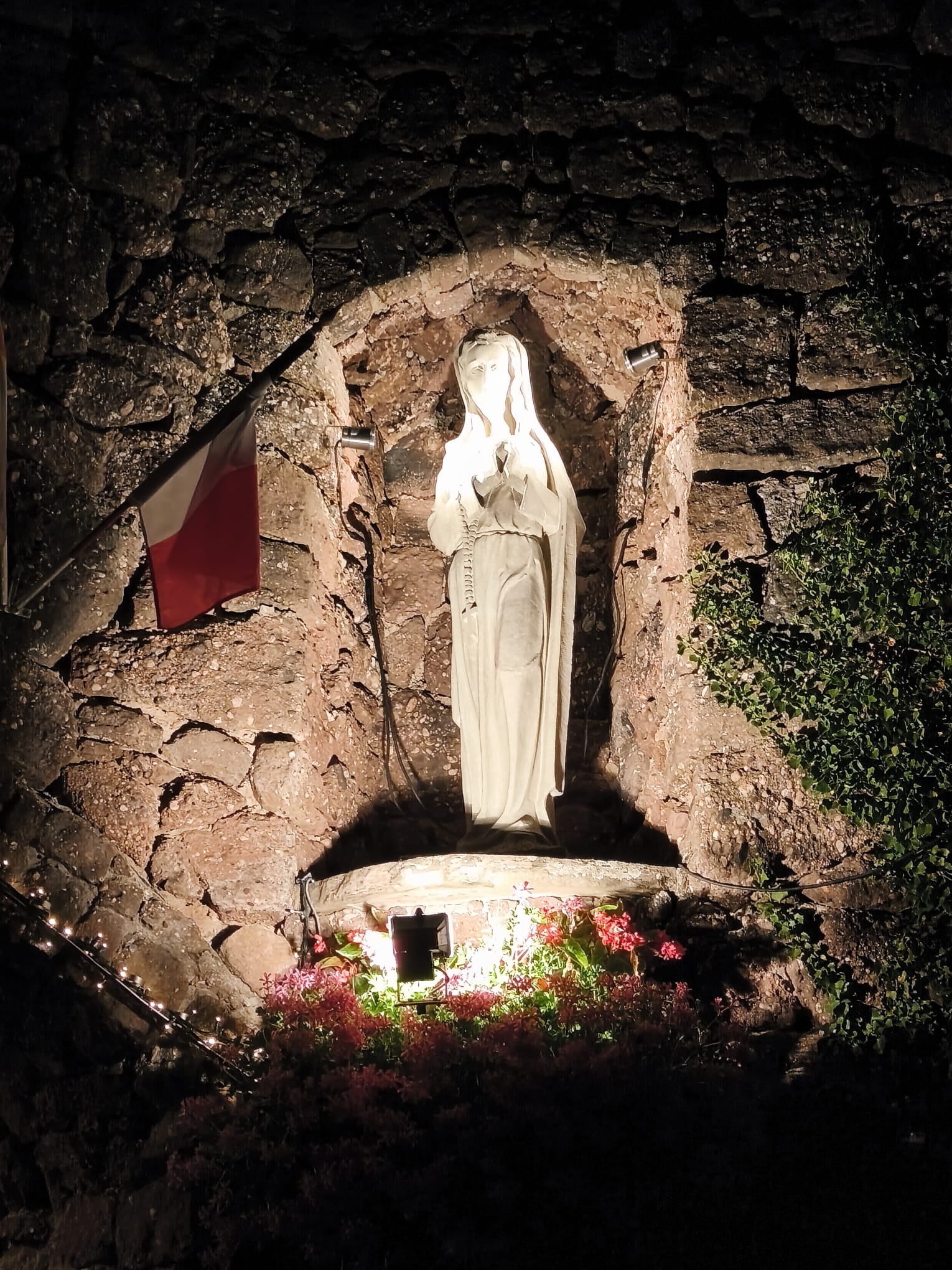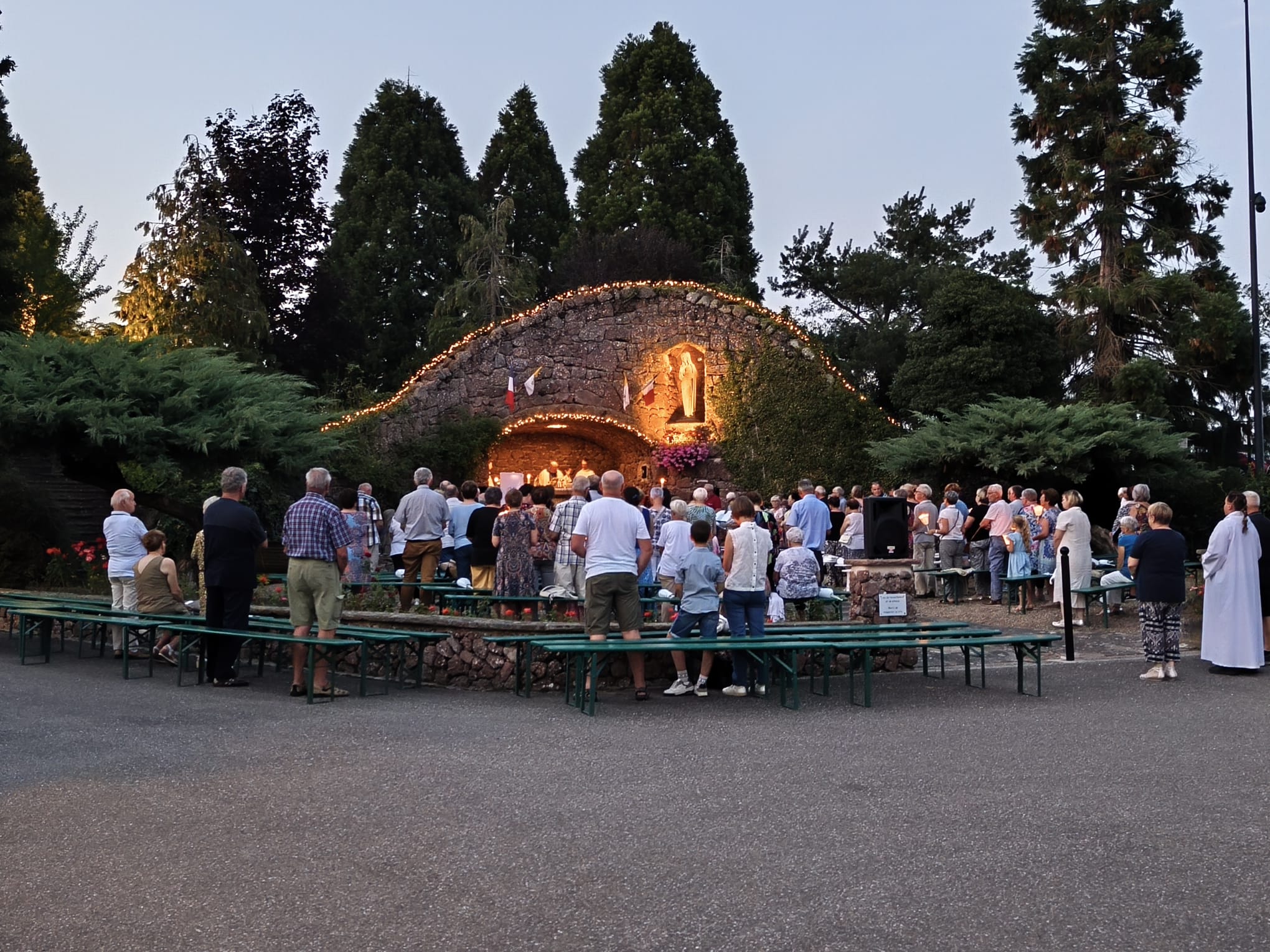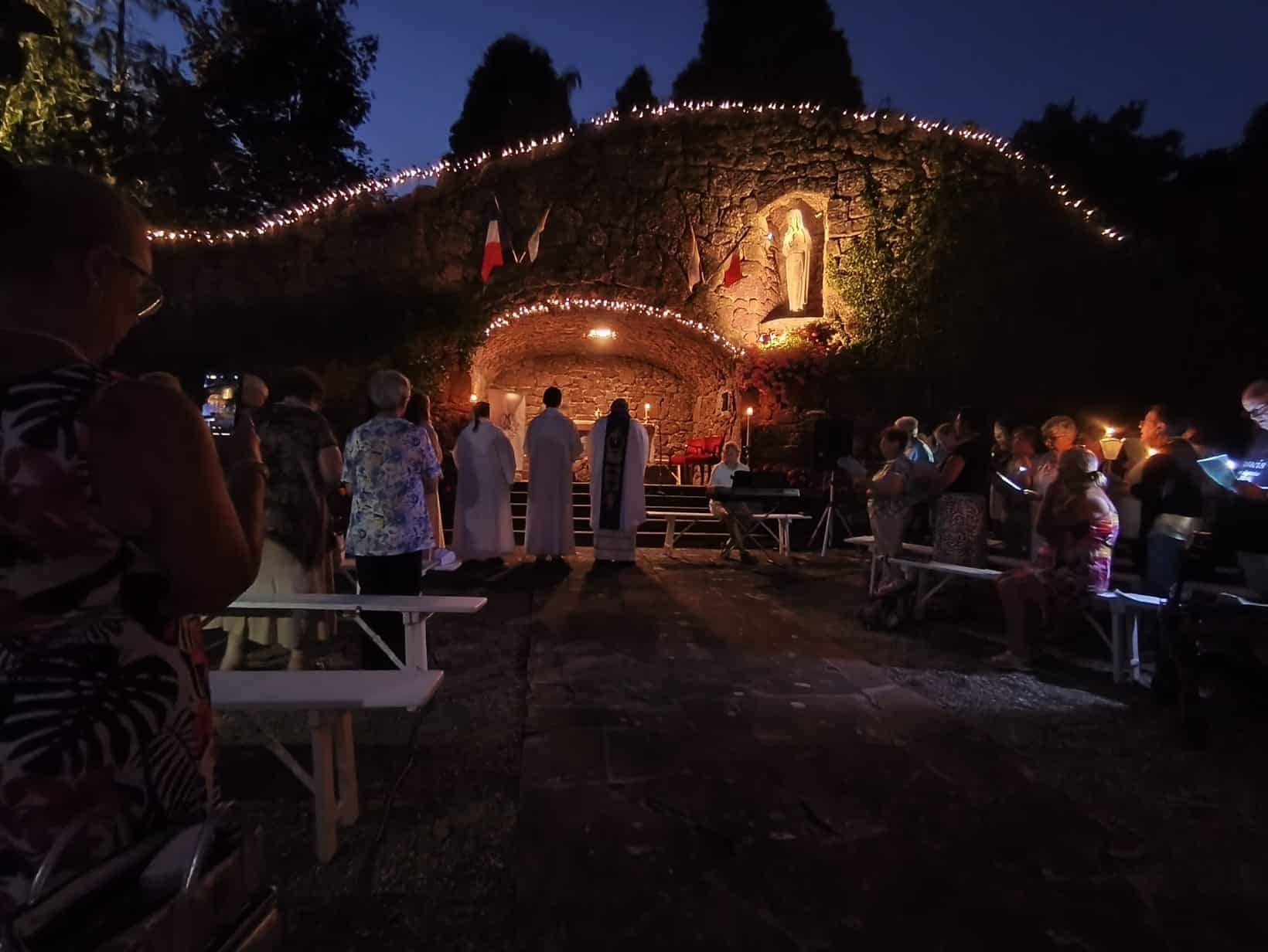 Le rendez-vous fut donné à 20h sur le parking de la distillerie. C’est là qu’une partie des fidèles, avec le chanoine François Geissler et le Père Thomas Schmitt, ont processionné ensemble vers la grotte de Lourdes dans une prière rythmée par les chants mariaux et textes méditatifs.