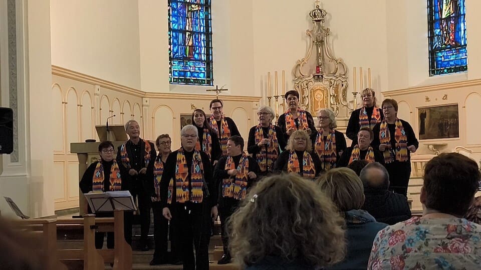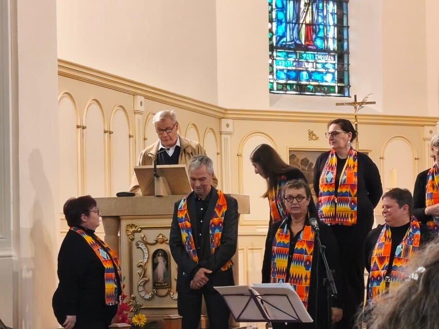 Dimanche 12 octobre 2025, le groupe » Grain d’Gospel » a fait vibrer l’église St Wendelin d’Uberach.Devant une assistance clairsemée mais participante, les choristes sous la direction d’Aude Rougemont ont interprété plusieurs chants de gospel. Par leurs voix mêlées à quelques pas de danse et des tapes dans les mains, c’est un moment de joie, de bonne humeur et d’enthousiasme qu’ont vécu les personnes présentes.
