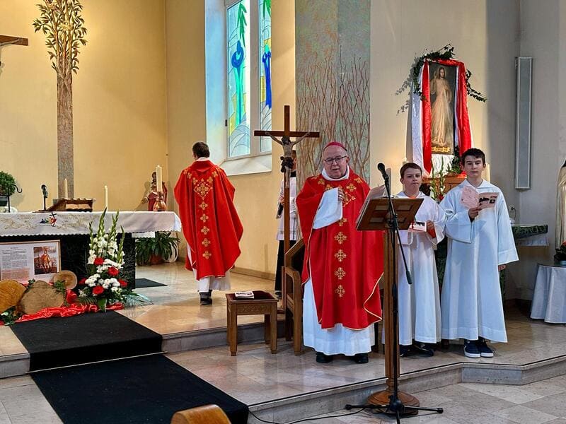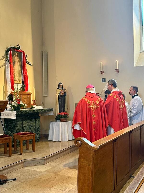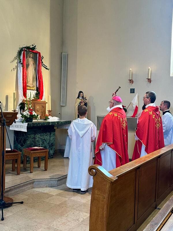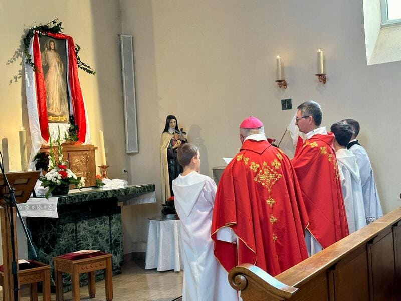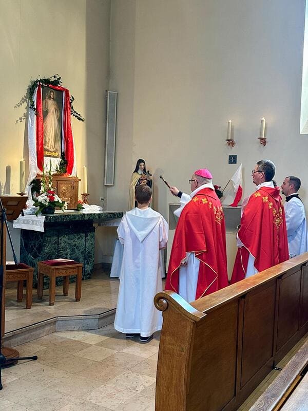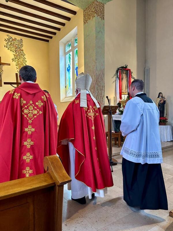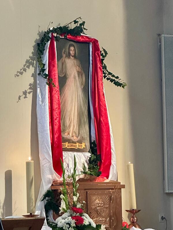 À l’issue de la messe, un moment particulier a été vécu par l’assemblée : un nouveau tableau représentant le Christ Miséricordieux a été solennellement béni dans l’église, au-dessus du tabernacle. Clin d’oeil du Ciel : le 5 octobre est aussi la fête de Sainte Faustine, religieuse polonaise qui a eu la vision du Christ figuré sur ce tableau.